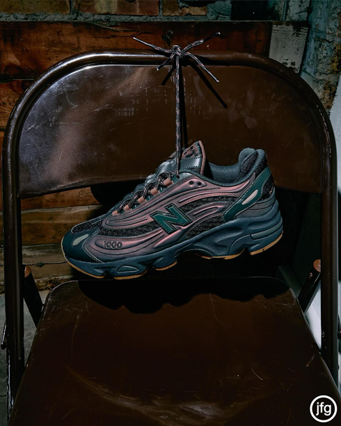 Šie New Balance 1000 x Joe Freshgoods sporta apavi ir dekorēti ar valdzinoši dziļām krāsām un metāliskiem akcentiem, lai godinātu retro Y2K izskatu, vienlaikus norādot uz modes nākotni. Apavi, kas sākotnēji tika izstrādāti kā skriešanas apavi, ir ārkārtīgi ērti valkāt, pateicoties apavu zīmola elastīgajai ABZORB polsterējumam un izturīgajai gumijas ārējai zolei. Apavu augšdaļa ir veidota no melna tīkla ar platām atvērumiem, kas ļauj gaisam brīvi cirkulēt ap kājām, tādējādi palīdzot tās saglabāt vēsas. Viļņveida sintētiskās ādas pārklājumi plūst gar sāniem vara bronzas krāsā ar raibumiem. Izturīga auklas sistēma plūst pāri pēdas augšdaļai līdzīgās bagātīgās krāsās, un izšūts New Balance 1000 zīmols rotā mēli. Vairāk austu tekstu parādās uz sānu priekšpēdas, šoreiz paziņojot par Joe Freshgoods ieguldījumu ar burtiem JFG, kas atkārtojas mazajiem burtiem uz papēža. Dažādie materiāla slāņi, kas aptver pēdas aizmuguri, ir slīpi uz sāniem, piešķirot dizainam neparastu pieskārienu, bet klasiskāku izskatu nodrošina veidoti N logotipi uz katra sāna. Pēdējais krāsu akcents izceļ zolītes, kas ir eleganta tirkīza krāsā ar melnu dubulto logotipu, kas pabeidz šo glīto sadarbības dizainu.